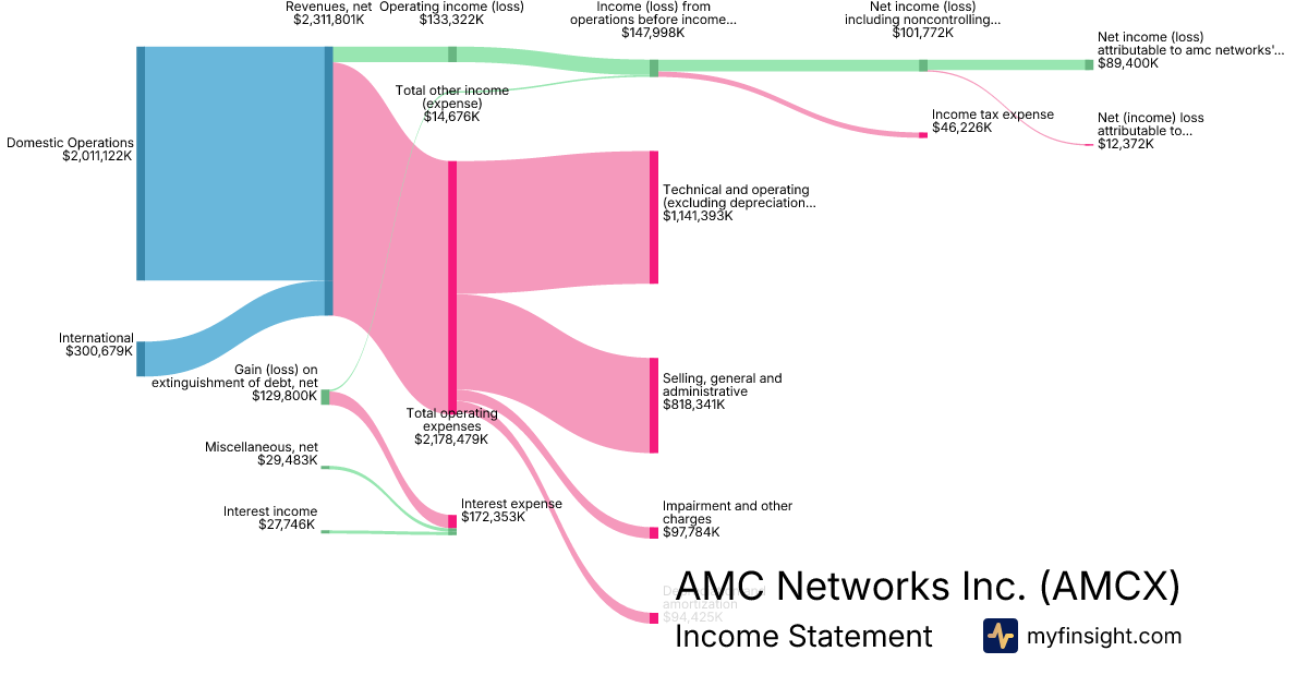 For the year ending 2025-12-31, AMCX made $2,311,801K in revenue. $89,400K in net income. Net profit margin of 3.87%.