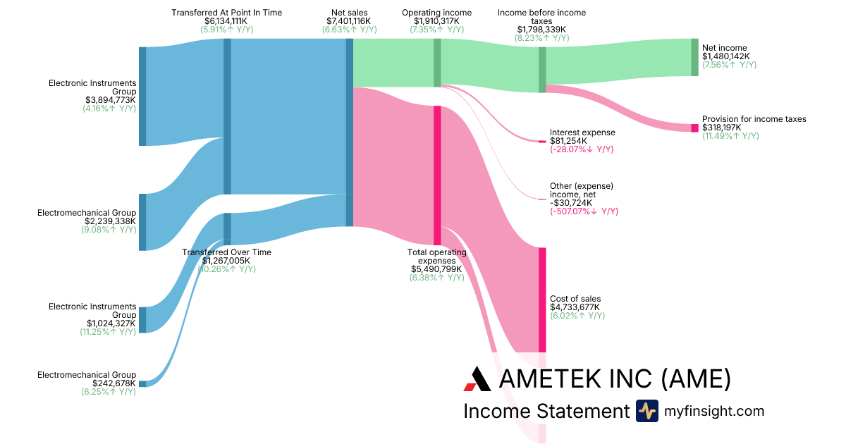 For the year ending 2025-12-31, AME made $7,401,116K in revenue. $1,480,142K in net income. Net profit margin of 20.00%.