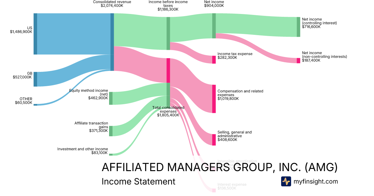 For the year ending 2025-12-31, AMG made $2,074,400K in revenue. $716,600K in net income. Net profit margin of 34.54%.