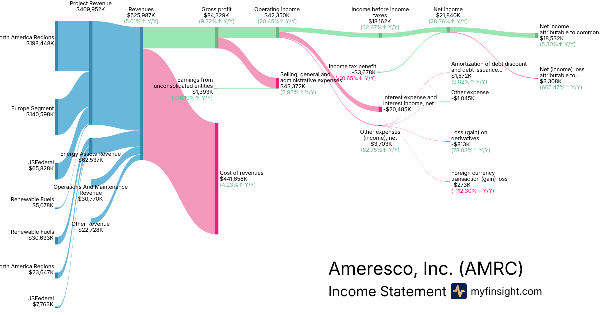 For the quarter ending 2025-09-30, AMRC made $525,987K in revenue. $18,532K in net income. Net profit margin of 3.52%.