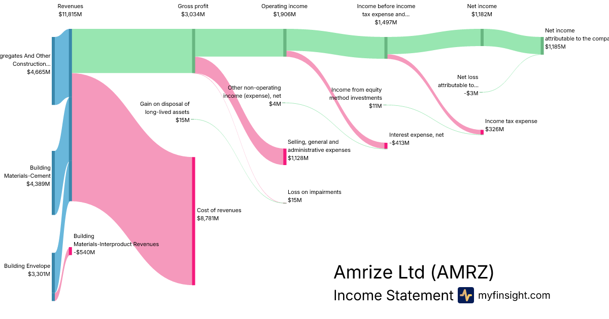 For the year ending 2025-12-31, AMRZ made $11,815M in revenue. $1,185M in net income. Net profit margin of 10.03%.