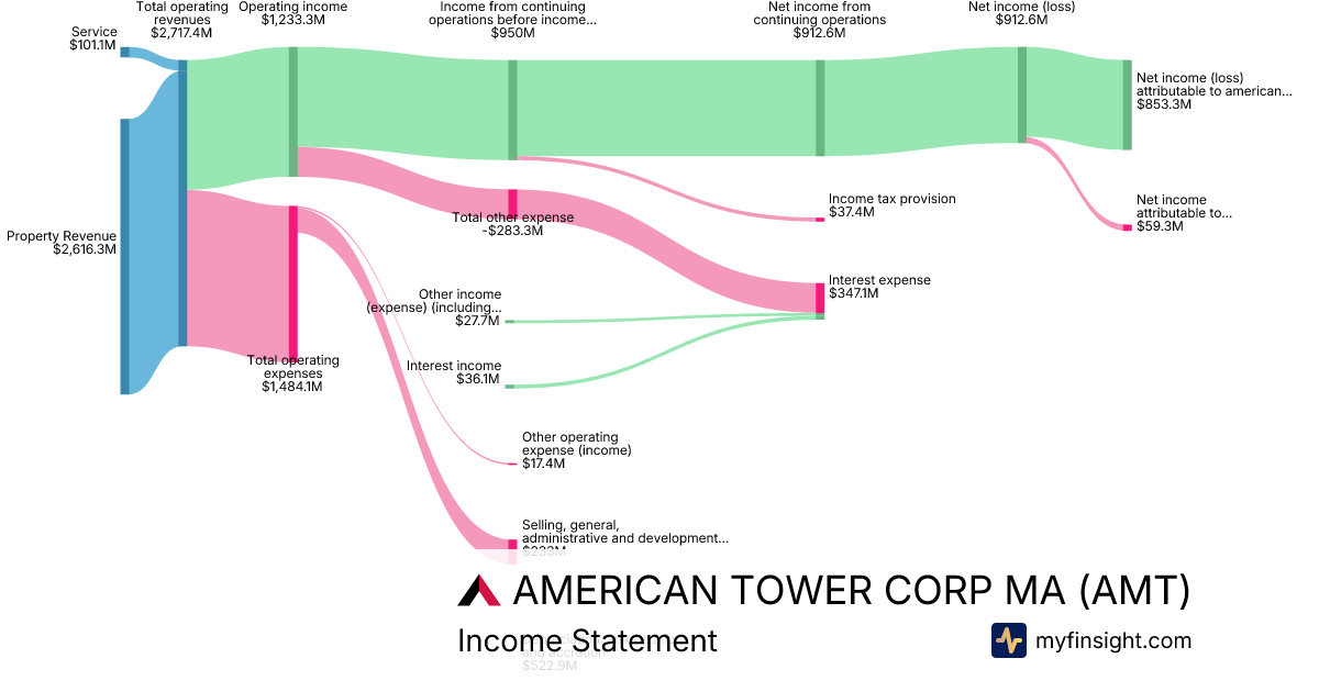 For the quarter ending 2025-09-30, AMT made $2,717.4M in revenue. $853.3M in net income. Net profit margin of 31.40%.