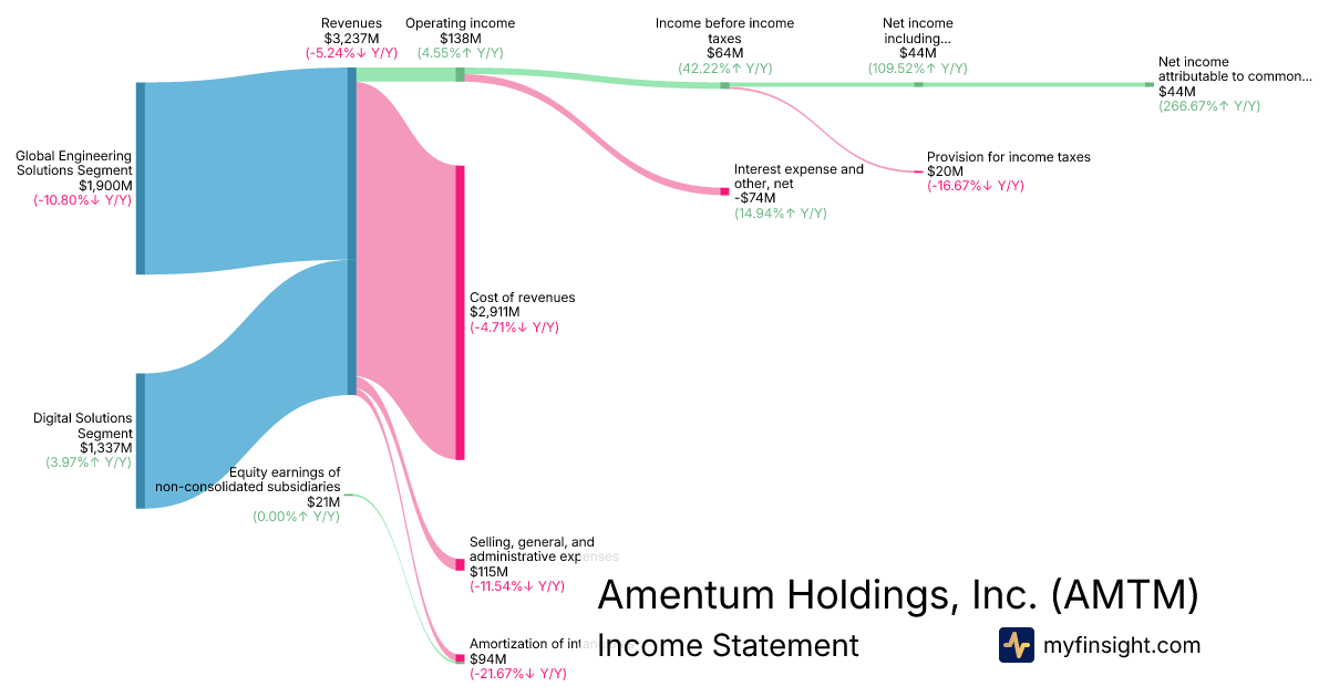 For the quarter ending 2026-01-02, AMTM made $3,237M in revenue. $44M in net income. Net profit margin of 1.36%.