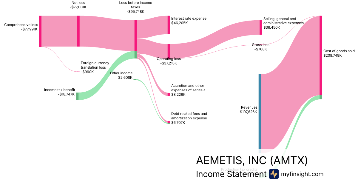 For the year ending 2025-12-31, AMTX made $197,626K in revenue. -$77,991K in net income. Net profit margin of -39.46%.