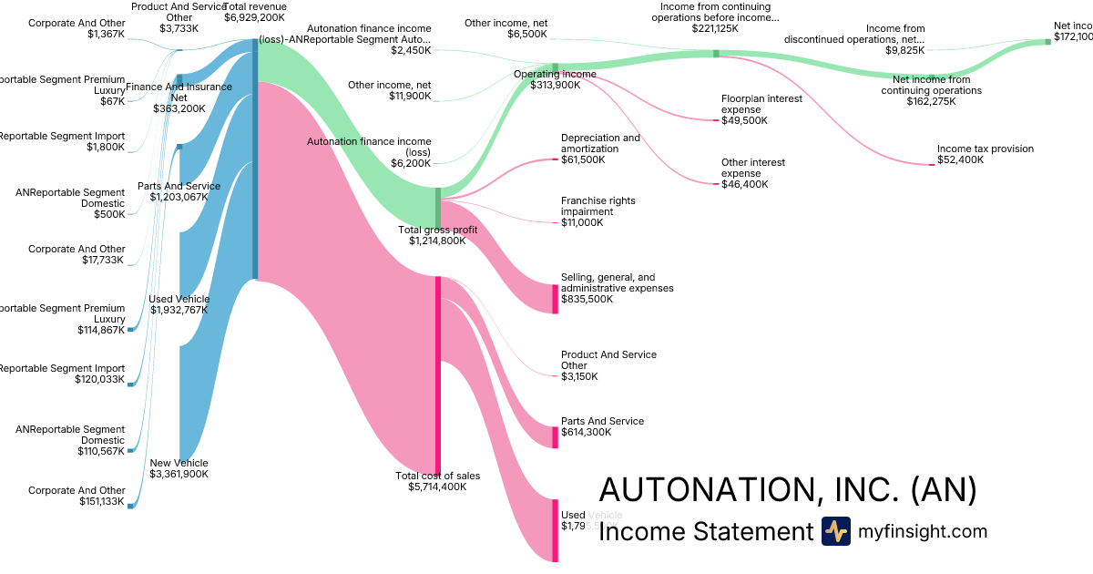 For the year ending 2025-12-31, AN made $50,401,500K in revenue. $649,100K in net income. Net profit margin of 1.29%.