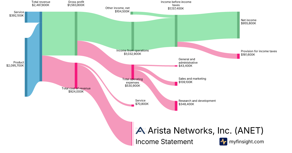 For the year ending 2025-12-31, ANET made $9,005,700K in revenue. $3,511,400K in net income. Net profit margin of 38.99%.