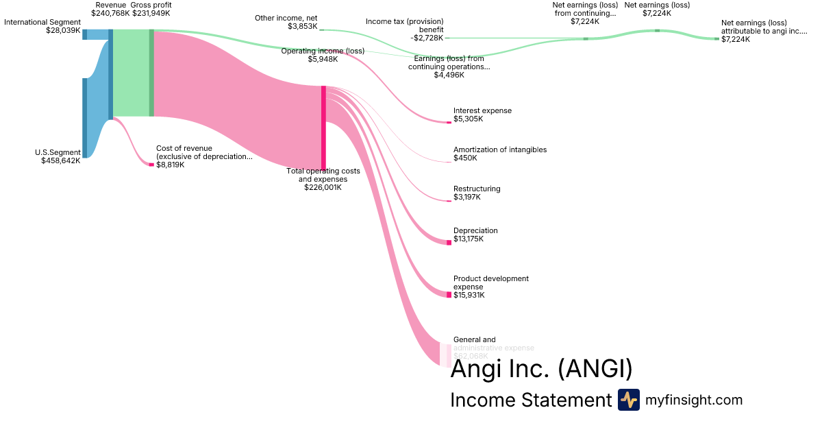 For the year ending 2025-12-31, ANGI made $1,030,535K in revenue. $43,832K in net income. Net profit margin of 4.25%.