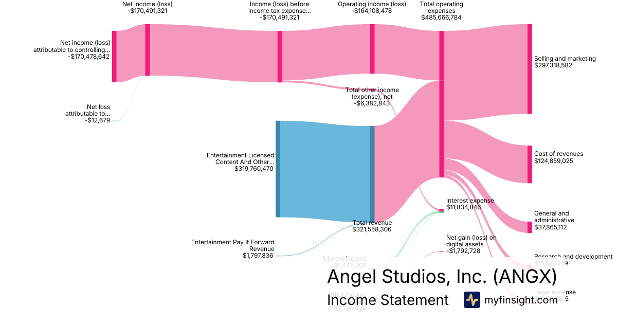 For the year ending 2025-12-31, ANGX made $321,558,306 in revenue. -$170,478,642 in net income. Net profit margin of -53.02%.