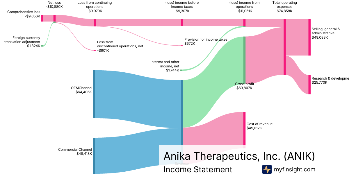 For the year ending 2025-12-31, ANIK made $112,819K in revenue. -$9,056K in net income. Net profit margin of -8.03%.