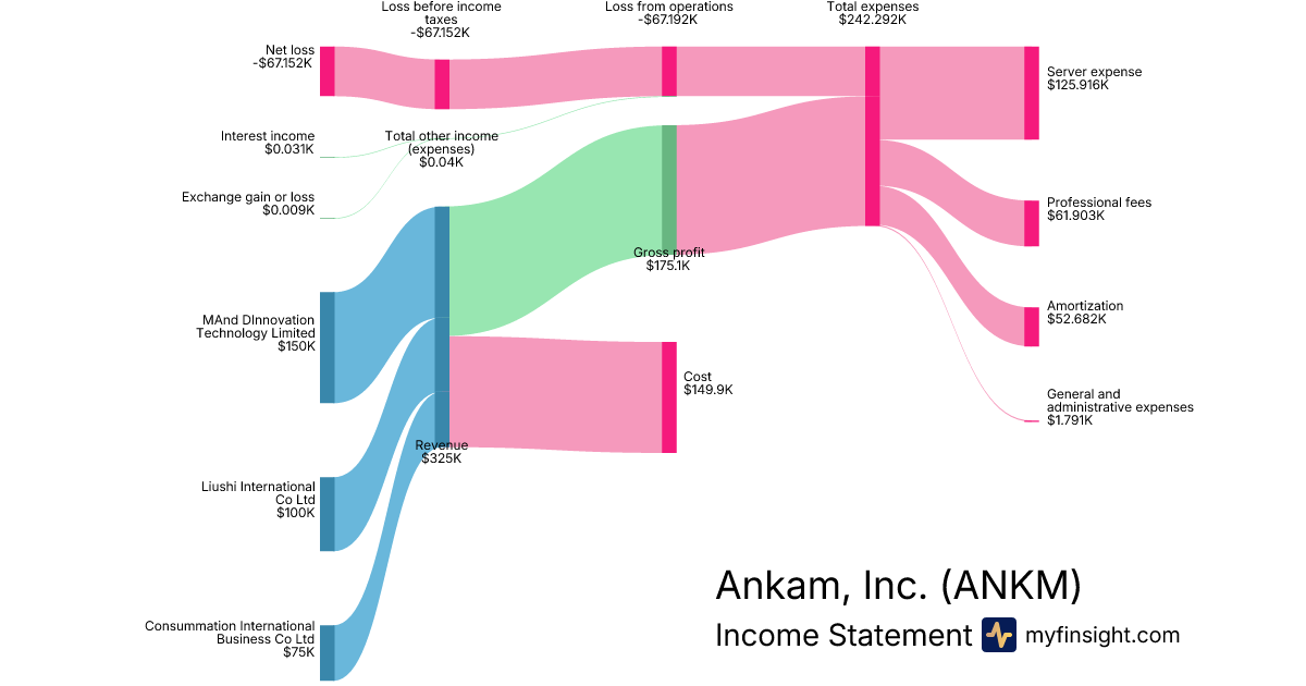 For the year ending 2025-11-30, ANKM made $325K in revenue. -$67.152K in net income. Net profit margin of -20.66%.