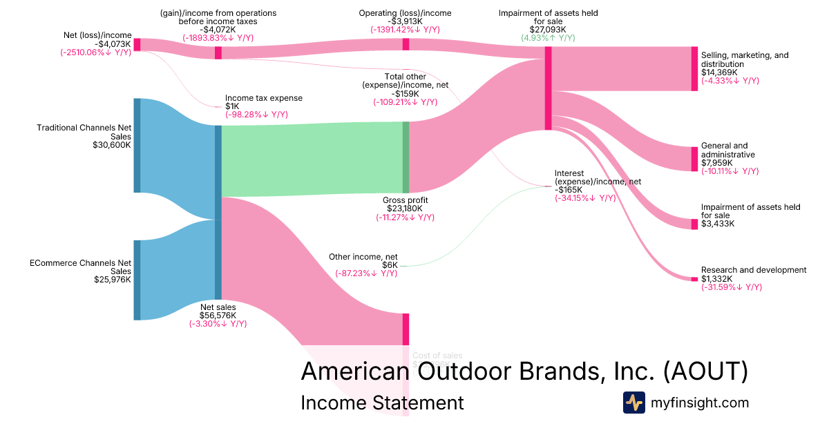For the quarter ending 2026-01-31, AOUT made $56,576K in revenue. -$4,073K in net income. Net profit margin of -7.20%.