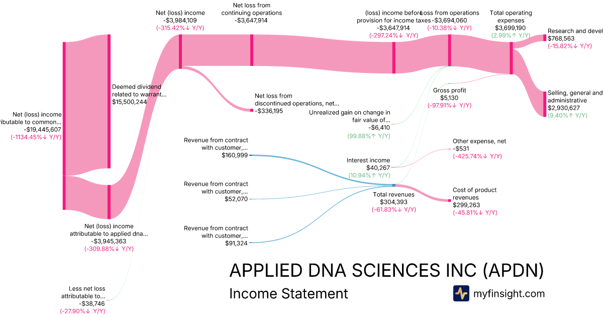 | Net (loss) income attributable to applied dna sciences, inc | -3,945,363 | -3,304,175 | -2,639,412 | 1,879,796 |