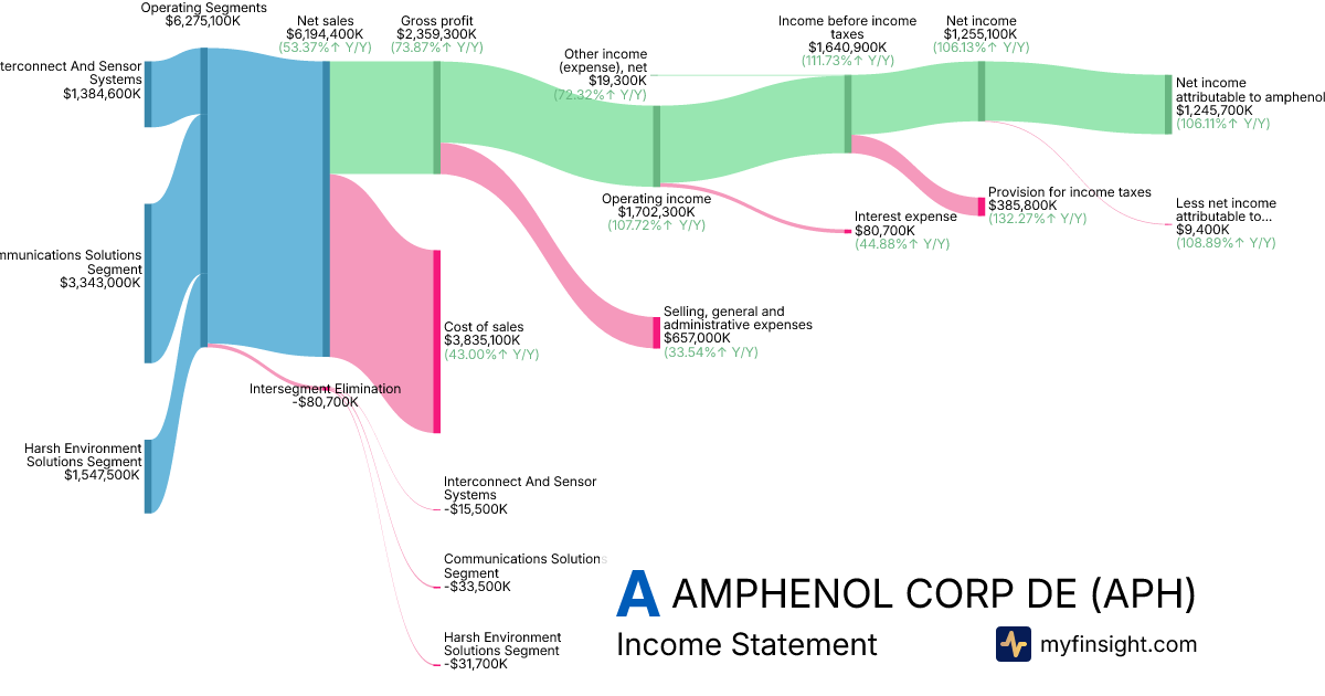 | Net income attributable to amphenol corporation | 1,245,700 | 1,091,300 | 737,800 | 604,400 |