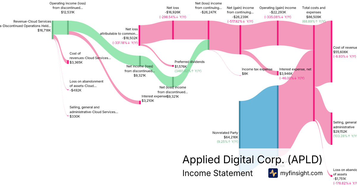 For the quarter ending 2025-08-31, APLD made $64,216K in revenue. -$18,502K in net income. Net profit margin of -28.81%.
