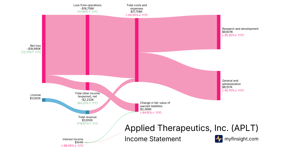 For the quarter ending 2025-09-30, APLT made $1,000K in revenue. -$18,990K in net income. Net profit margin of -1899.00%.