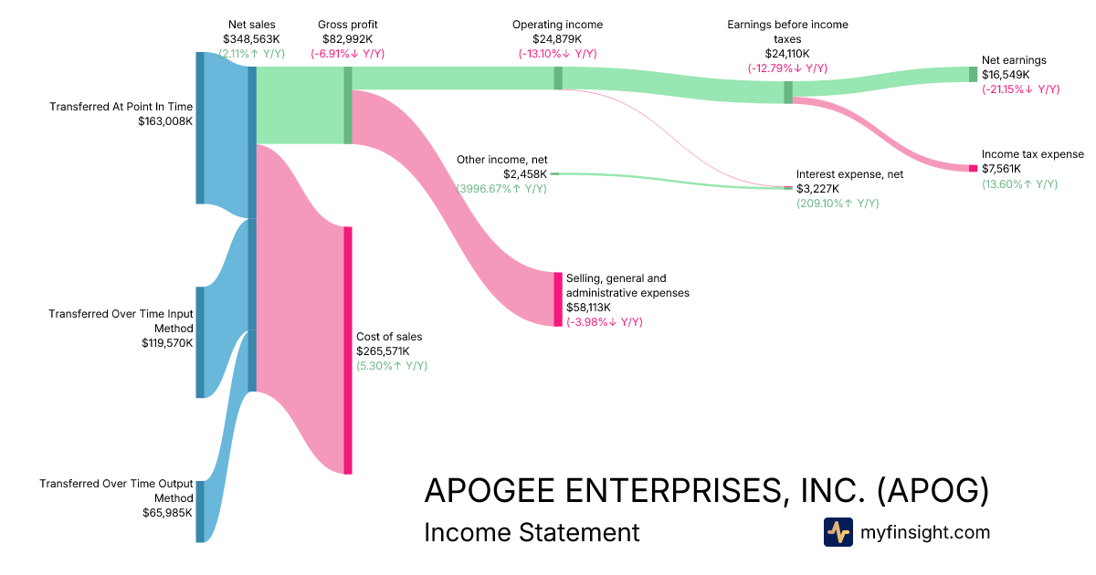 For the quarter ending 2025-11-29, APOG made $348,563K in revenue. $16,549K in net income. Net profit margin of 4.75%.
