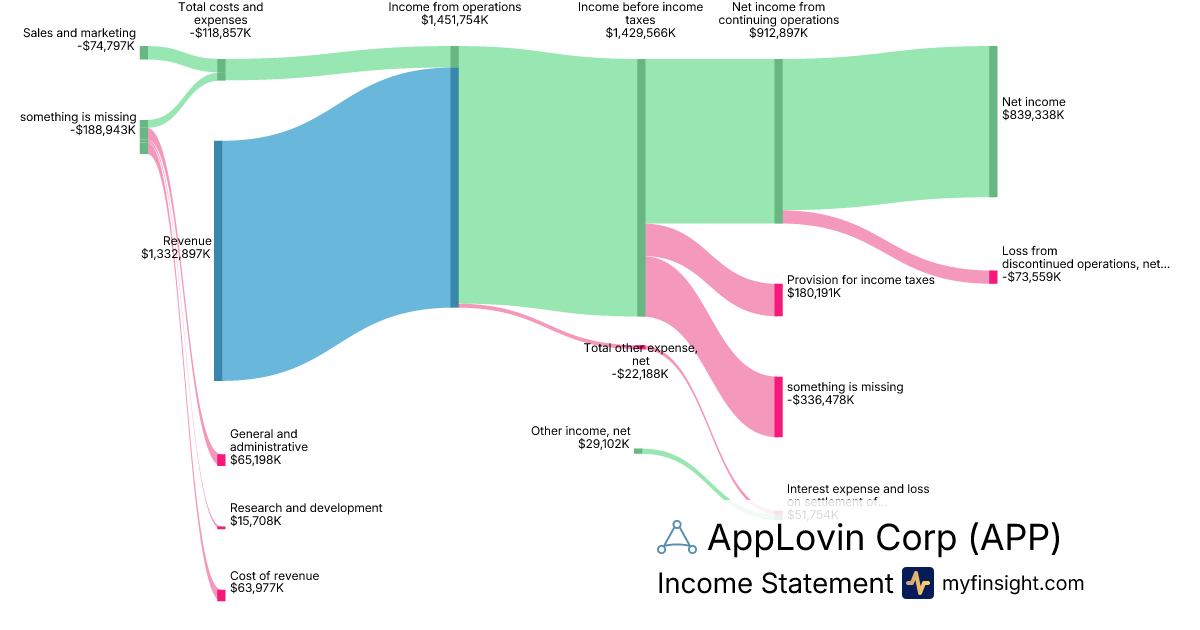 For the year ending 2025-12-31, APP made $5,480,717K in revenue. $3,333,751K in net income. Net profit margin of 60.83%.