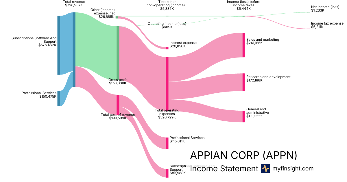 For the year ending 2025-12-31, APPN made $726,937K in revenue. $1,233K in net income. Net profit margin of 0.17%.