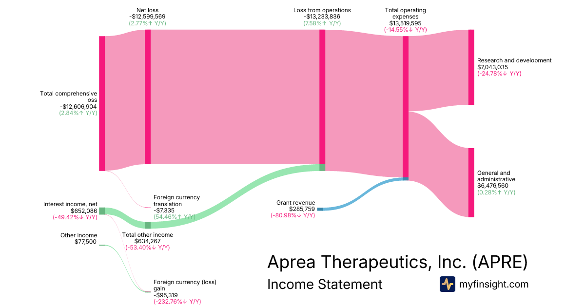 For the year ending 2025-12-31, APRE made $285,759 in revenue. -$12,606,904 in net income. Net profit margin of -4411.73%.