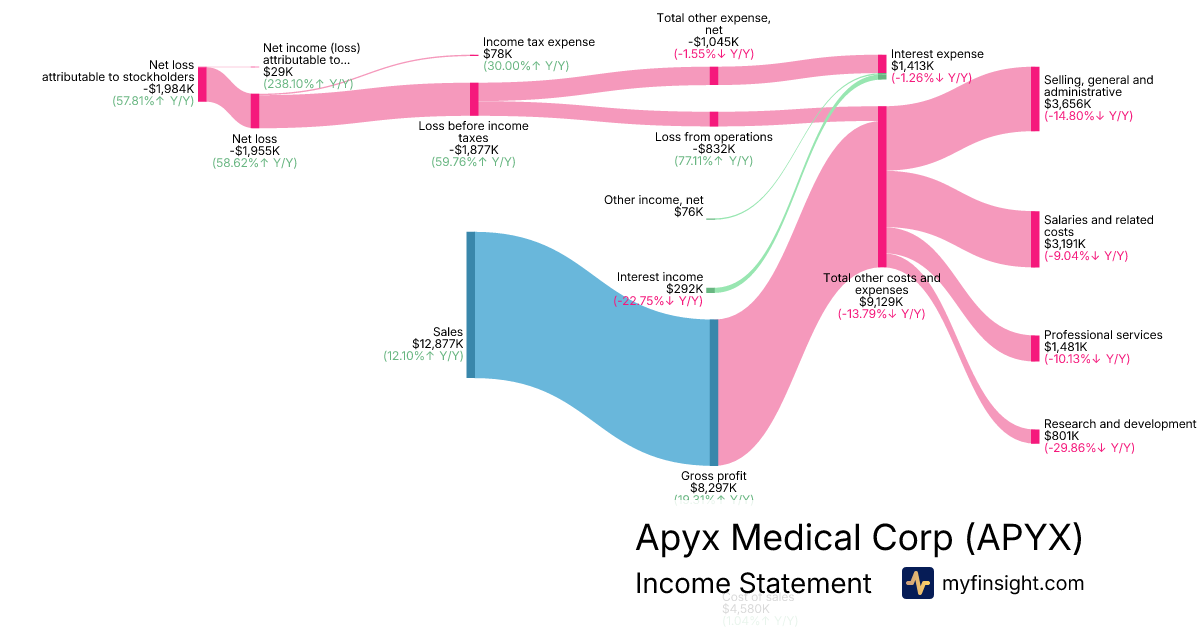 For the quarter ending 2025-09-30, APYX made $12,877K in revenue. -$1,984K in net income. Net profit margin of -15.41%.