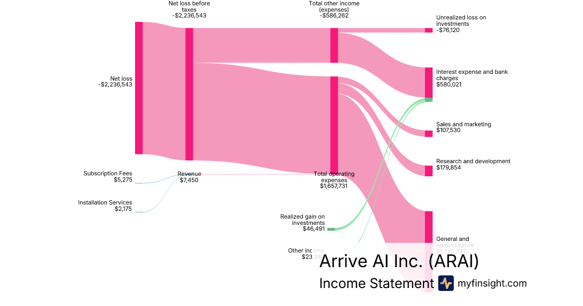 For the quarter ending 2025-09-30, ARAI made $1,735,060 in revenue. -$2,236,543 in net income. Net profit margin of -128.90%.