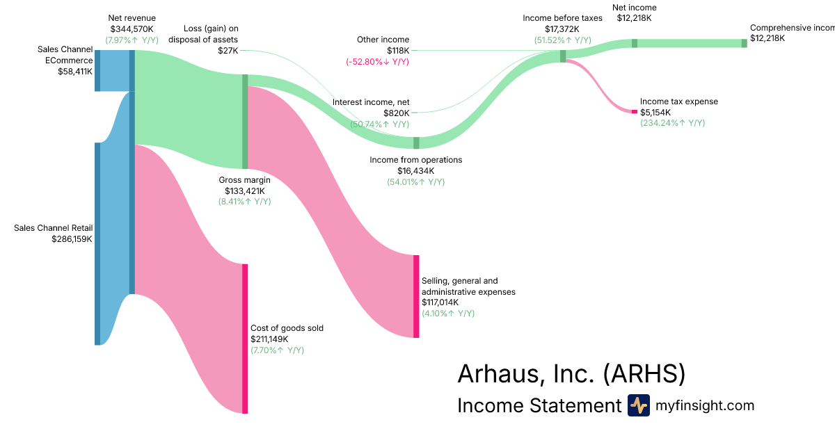 For the quarter ending 2025-09-30, ARHS made $344,570K in revenue. $12,218K in net income. Net profit margin of 3.55%.
