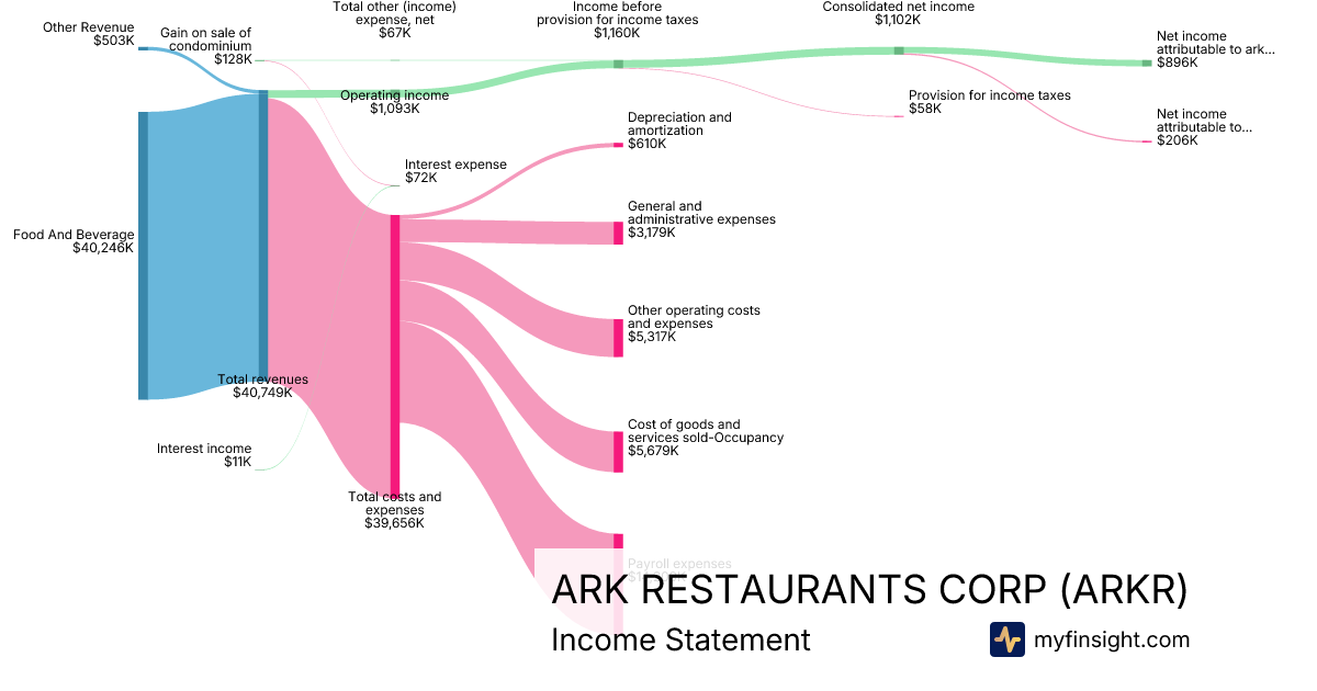For the quarter ending 2025-12-27, ARKR made $40,749K in revenue. $896K in net income. Net profit margin of 2.20%.