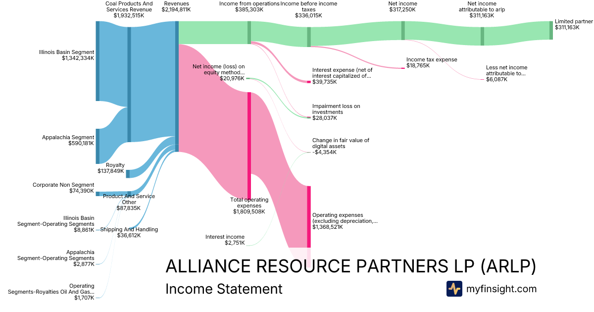 For the year ending 2025-12-31, ARLP made $2,194,811K in revenue. $311,163K in net income. Net profit margin of 14.18%.