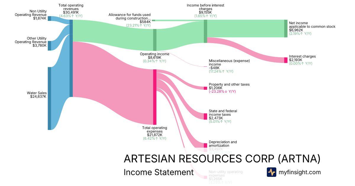 For the quarter ending 2025-09-30, ARTNA made $30,491K in revenue. $6,962K in net income. Net profit margin of 22.83%.