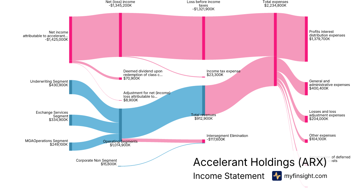 For the year ending 2025-12-31, ARX made $912,900K in revenue. -$1,425,000K in net income. Net profit margin of -156.10%.