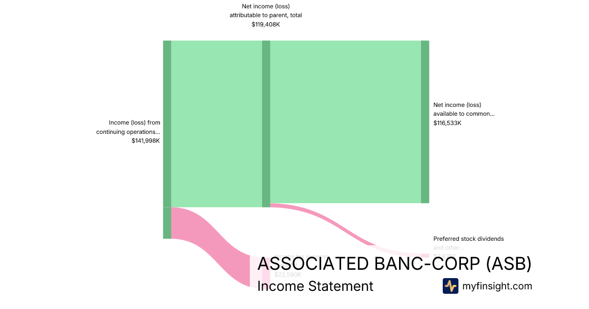 For the year ending 2025-12-31, ASB made $577,910K in revenue. $463,277K in net income. Net profit margin of 80.16%.