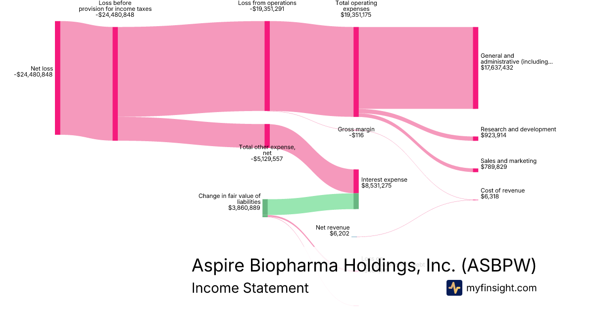 For the year ending 2025-12-31, ASBPW made $6,202 in revenue. -$24,480,848 in net income. Net profit margin of -394725.06%.