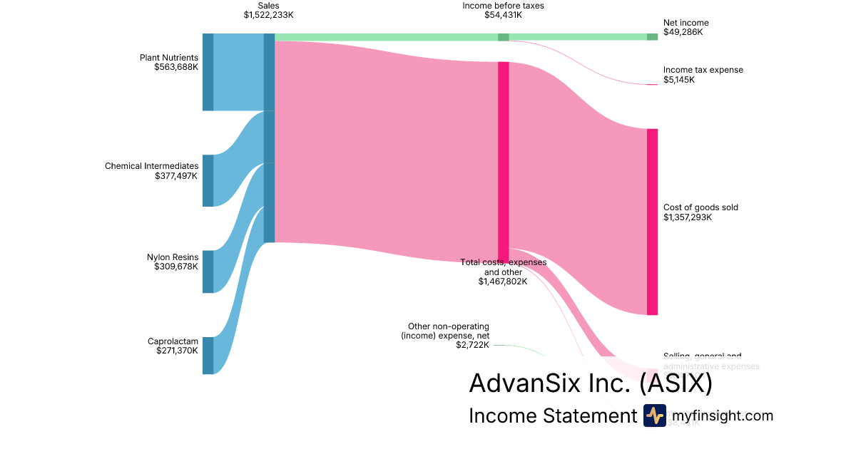 For the year ending 2025-12-31, ASIX made $1,522,233K in revenue. $49,286K in net income. Net profit margin of 3.24%.