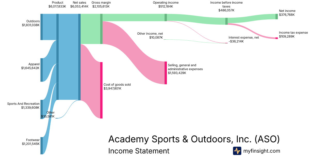 For the year ending 2026-01-31, ASO made $6,053,414K in revenue. $376,768K in net income. Net profit margin of 6.22%.