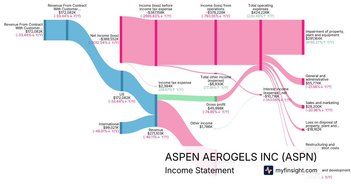 For the year ending 2025-12-31, ASPN made $271,103K in revenue. -$389,552K in net income. Net profit margin of -143.69%.