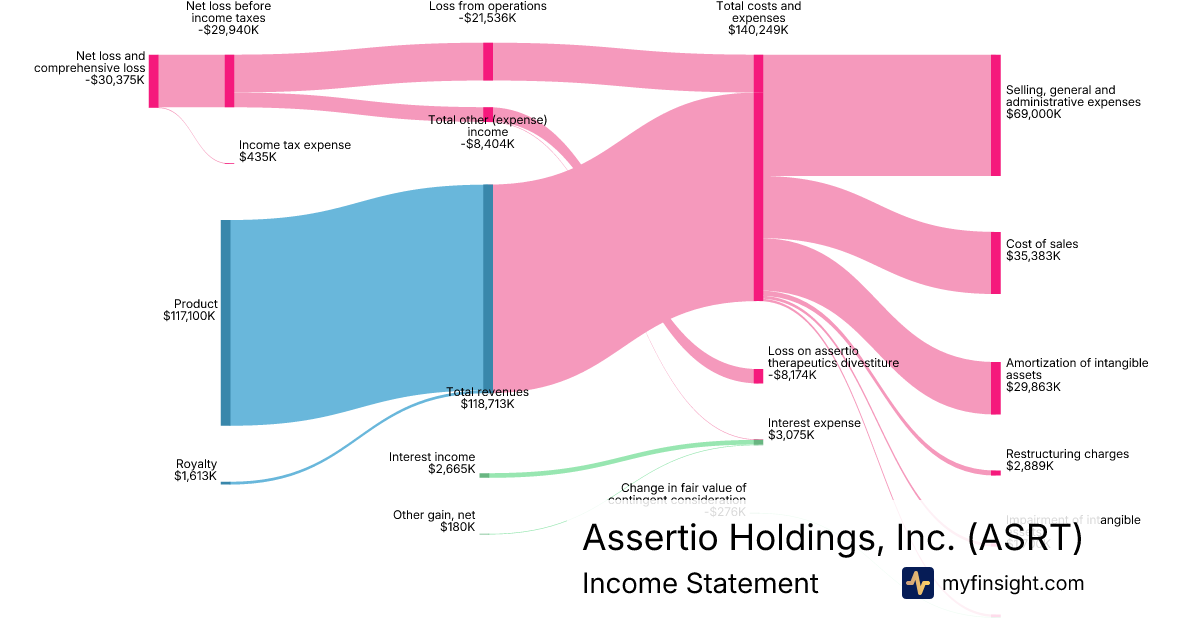 For the year ending 2025-12-31, ASRT made $118,713K in revenue. -$30,375K in net income. Net profit margin of -25.59%.