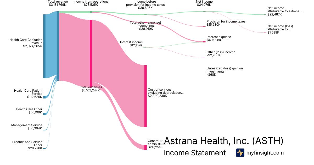 For the year ending 2025-12-31, ASTH made $3,181,769K in revenue. $22,487K in net income. Net profit margin of 0.71%.