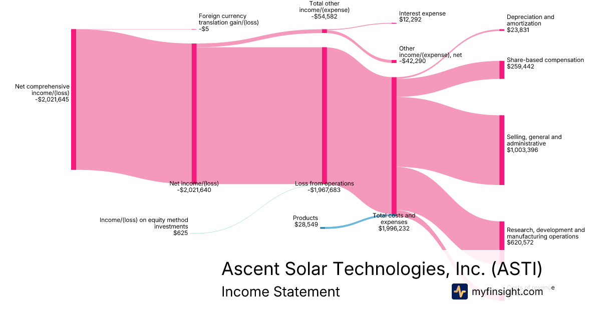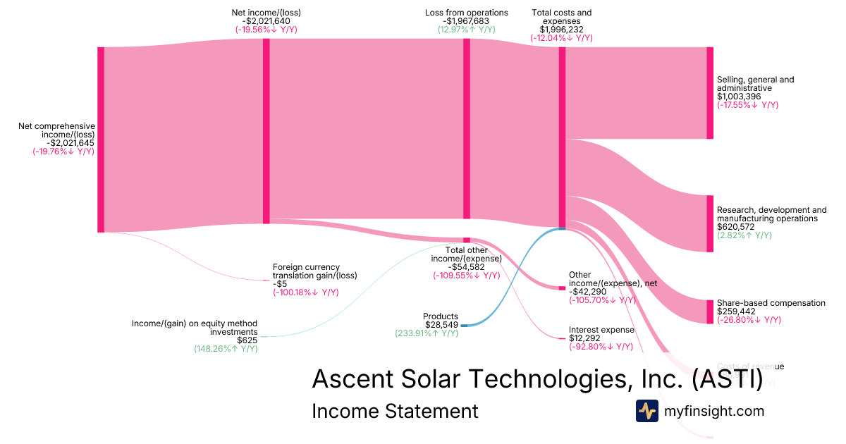 For the quarter ending 2025-09-30, ASTI made $28,549 in revenue. -$2,021,645 in net income. Net profit margin of -7081.32%.