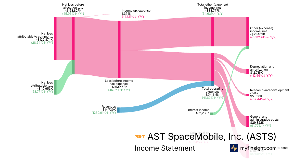 For the quarter ending 2025-09-30, ASTS made $14,739K in revenue. -$122,874K in net income. Net profit margin of -833.67%.