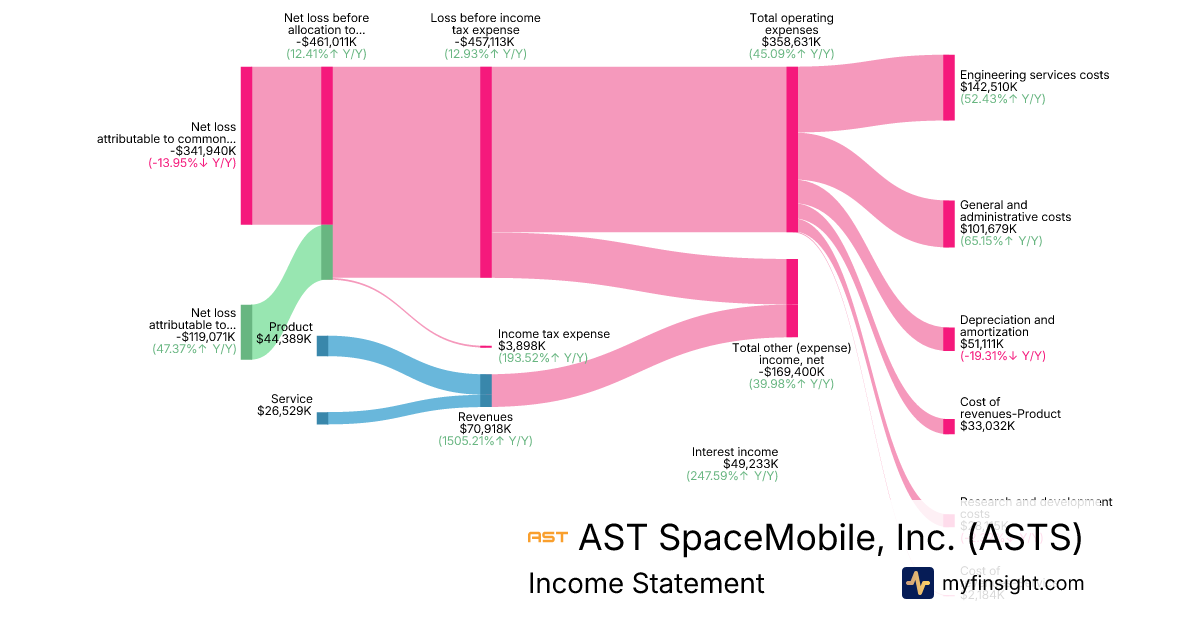 For the year ending 2025-12-31, ASTS made $70,918K in revenue. -$341,940K in net income. Net profit margin of -482.16%.