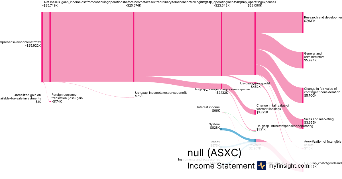 For the quarter ending 2024-06-30, ASXC made $2,207K in revenue. -$25,922K in net income. Net profit margin of -1174.54%.