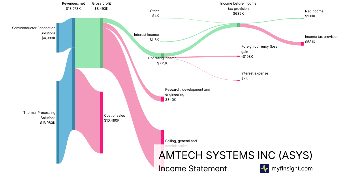 For the quarter ending 2025-12-31, ASYS made $19,092K in revenue. $108K in net income. Net profit margin of 0.57%.
