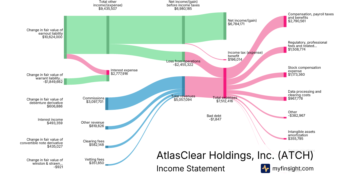 For the quarter ending 2025-12-31, ATCH made $5,057,094 in revenue. $6,784,171 in net income. Net profit margin of 134.15%.
