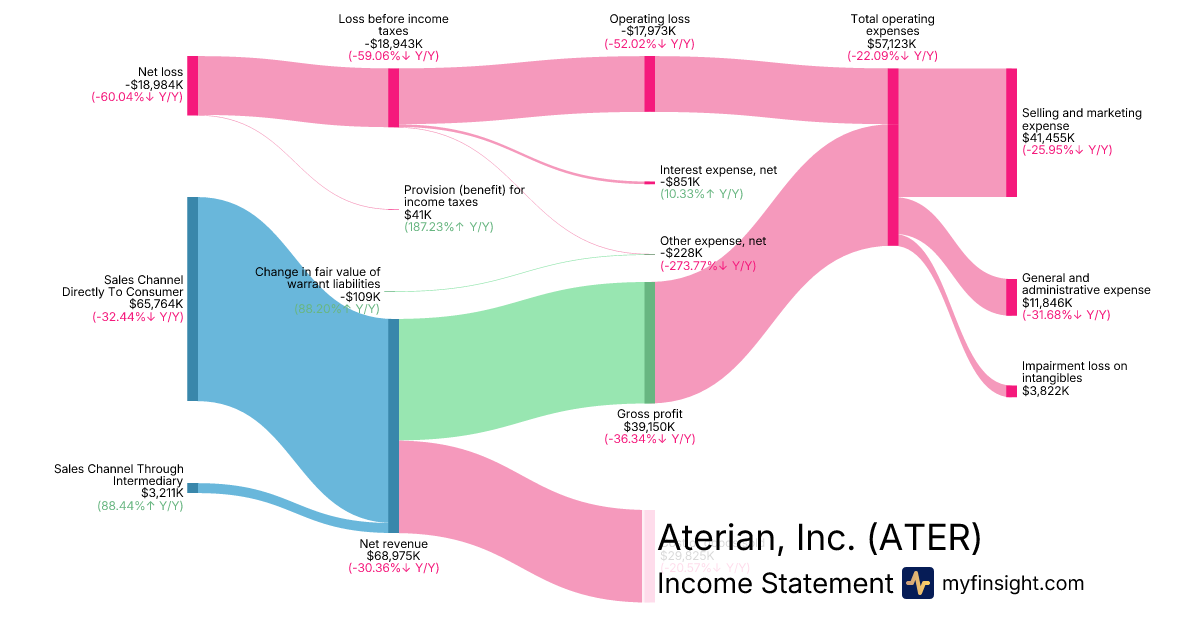 For the year ending 2025-12-31, ATER made $68,975K in revenue. -$18,984K in net income. Net profit margin of -27.52%.