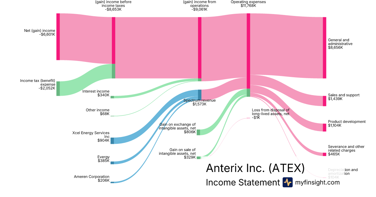 For the quarter ending 2025-12-31, ATEX made $1,573K in revenue. -$6,601K in net income. Net profit margin of -419.64%.