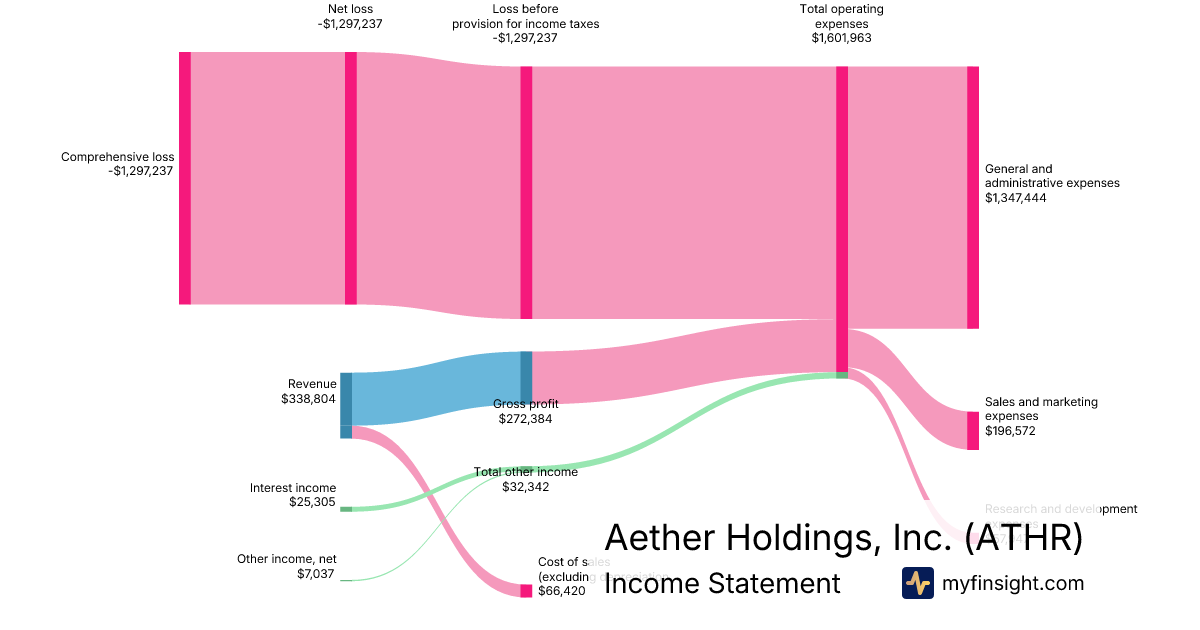 For the quarter ending 2025-12-31, ATHR made $338,804 in revenue. -$1,297,237 in net income. Net profit margin of -382.89%.