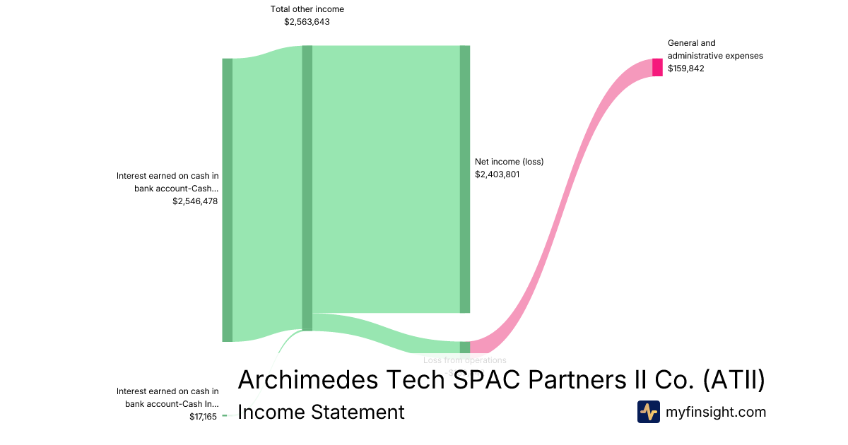 For the quarter ending 2025-09-30, ATII made $2,563,643 in revenue. $2,403,801 in net income. Net profit margin of 93.77%.