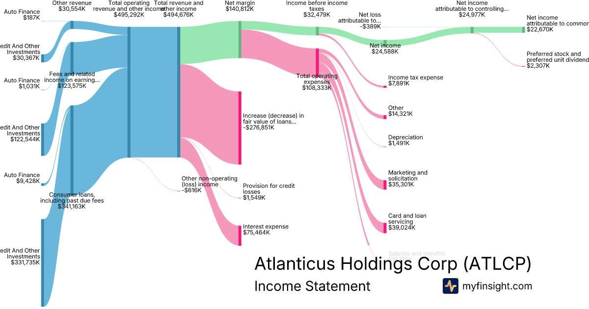 For the quarter ending 2025-09-30, ATLCP made $494,676K in revenue. $22,670K in net income. Net profit margin of 4.58%.
