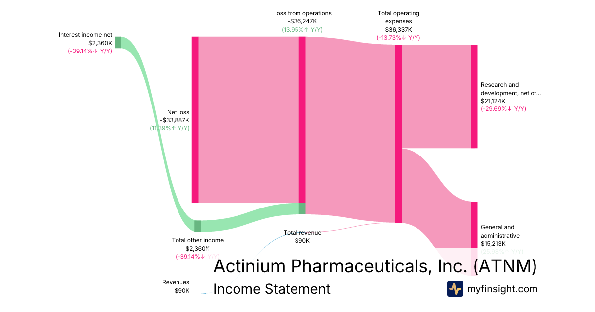 For the year ending 2025-12-31, ATNM made $90K in revenue. -$33,887K in net income. Net profit margin of -37652.22%.