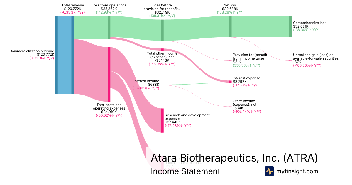For the year ending 2025-12-31, ATRA made $120,772K in revenue. $32,681K in net income. Net profit margin of 27.06%.